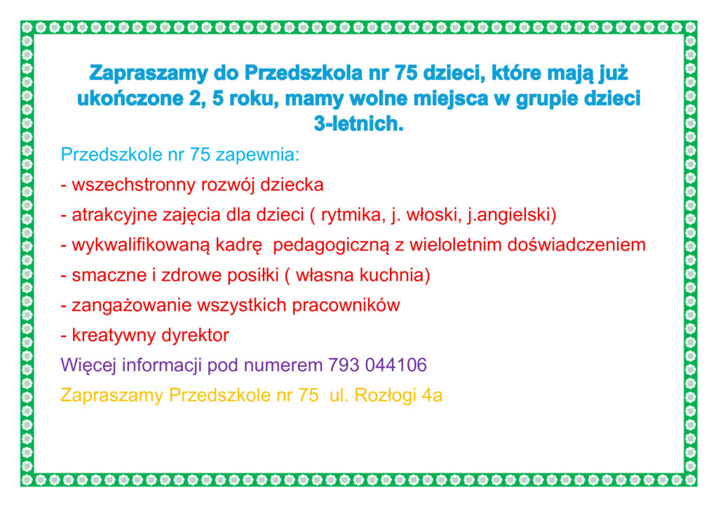 Wszelkie Prawa Zastrzeżone 2025 - Przedszkole 75